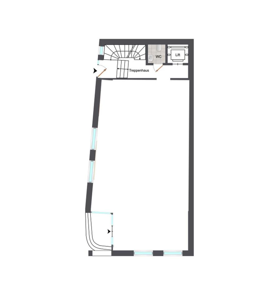 Grundriss: Offene, weitläufige Ladenfläche, nahezu stützenfrei für flexible Einrichtungskonzepte.