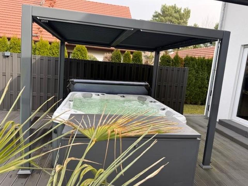 Das Haus verfügt über drei moderne Bäder. Ein Highlight ist der traumhafte Garten mit Pool, Sauna und Whirlpool – hier wird Entspannung großgeschrieben. Große Fenster durchfluten die lichtdurchfluteten Räume mit natürlichem Tageslicht. Genießen Sie den großzügigen Wohn- und Essbereich, eine moderne Einbauküche sowie den weitläufigen Garten mit all seinen luxuriösen Annehmlichkeiten.