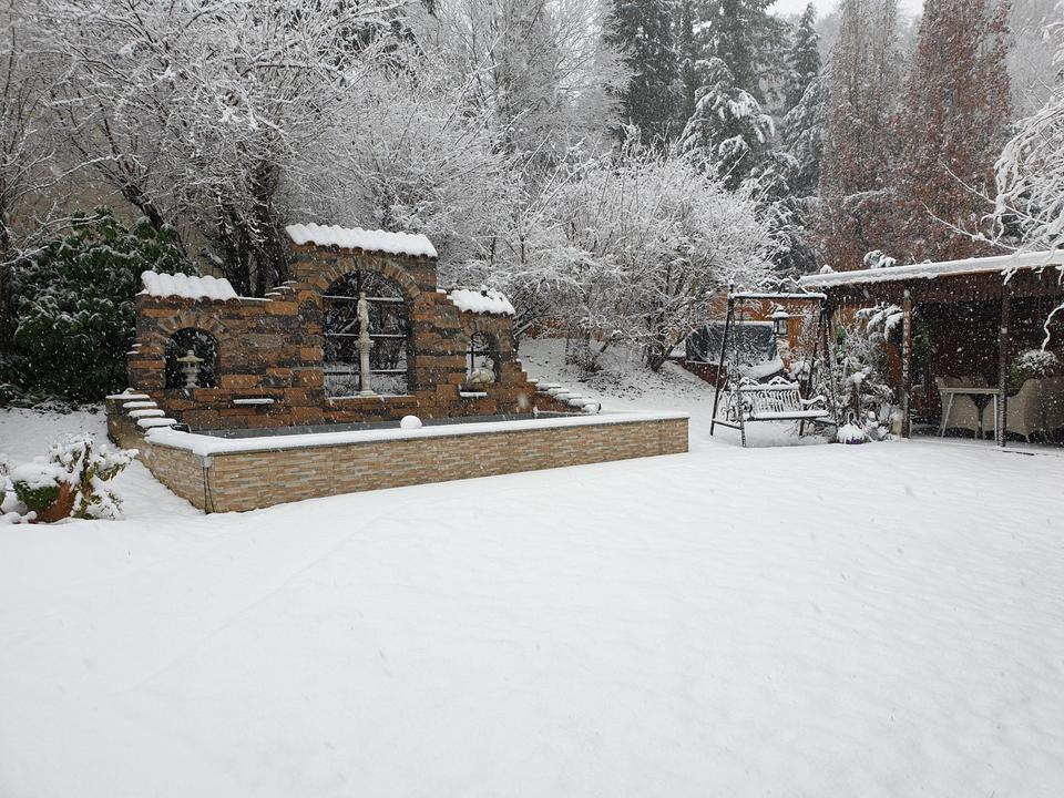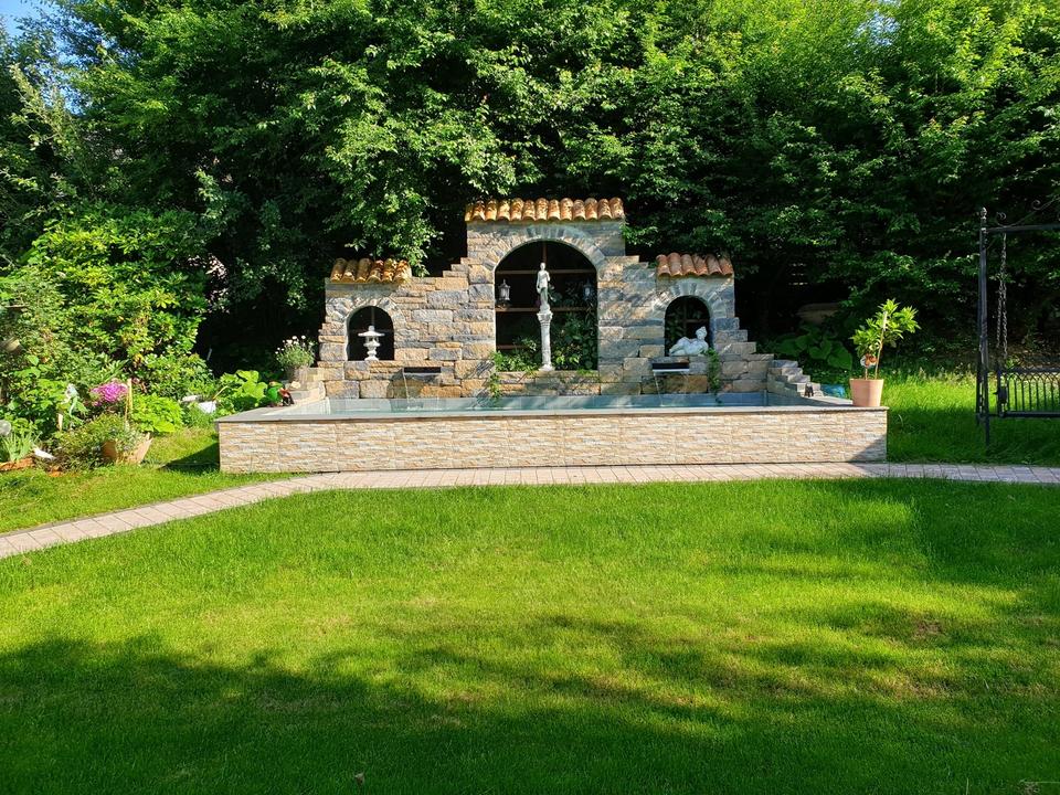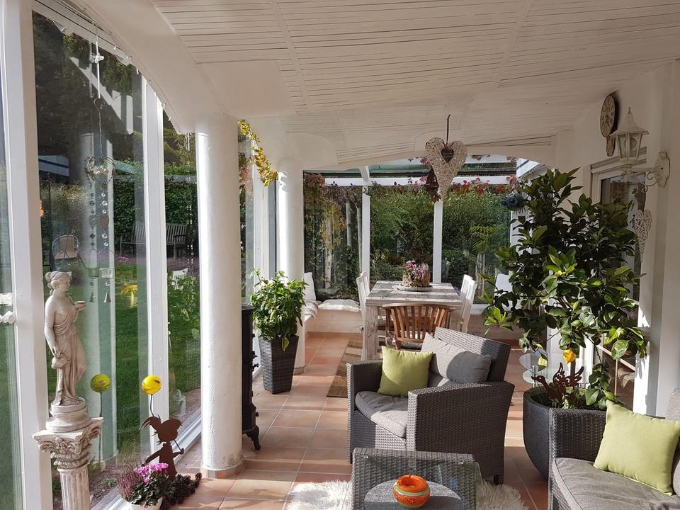 Balkon, Terrasse, Wintergarten, Garten, Keller, Duschbad, Pool · Schwimmbad, Einbauküche, Gäste-WC, Kamin, Fliesen