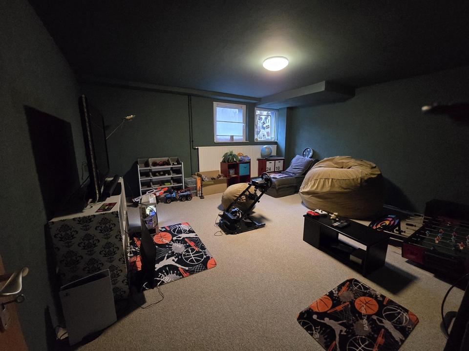 Der Keller besteht aus 4 Räumen inkl. großem Hobby-/Gamingroom mit TV Anschluss – der Traum aller Kinder. Dieser Raum ist mit Teppich verlegt.