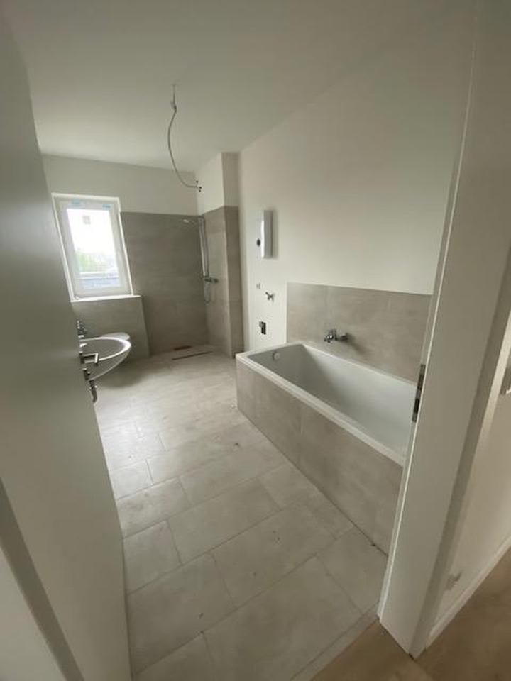 Modernes Mehrfamilienhaus mit 8 WE, Fahrstuhl und Nebengelass Unser Haus ist Baujahr 2025 und nach dem KFW55-Standard errichtet. Diese große 3-Raum-Wohnung ist großzügig geschnitten und ideal für Paare oder junge Familien. Das Highlight dieser tol…