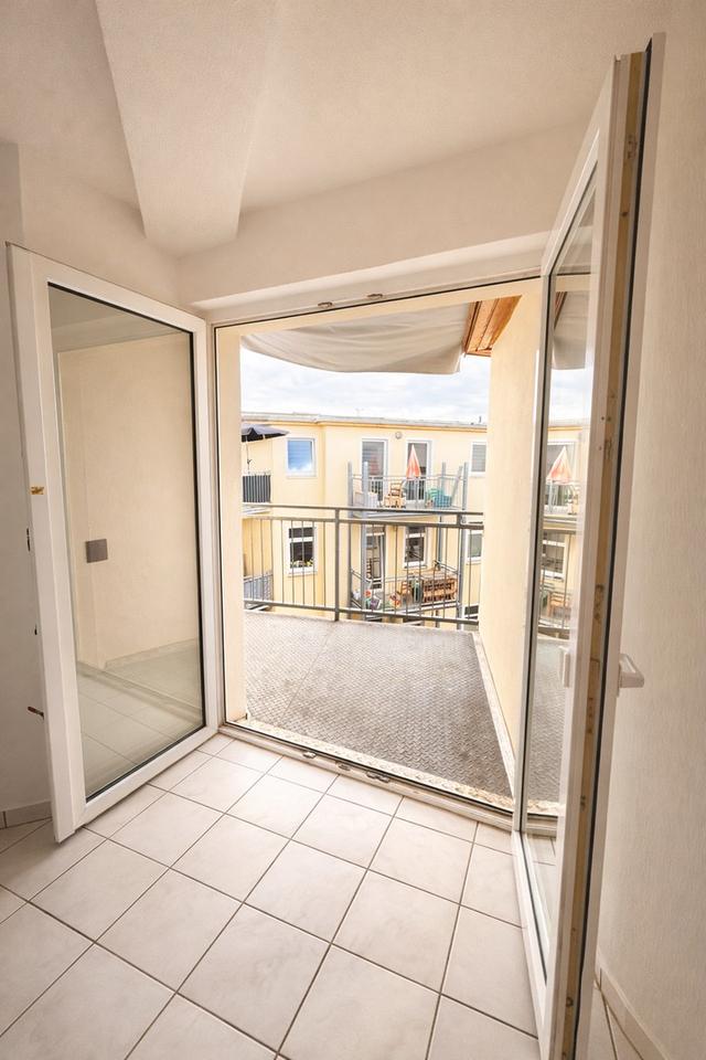 Die Wohnung verfügt über eine praktische Raumaufteilung mit drei gut nutzbaren Zimmern, einer separaten Küche, einem Badezimmer mit Dusche sowie einem Balkon mit Blick in den ruhigen Innenhof.