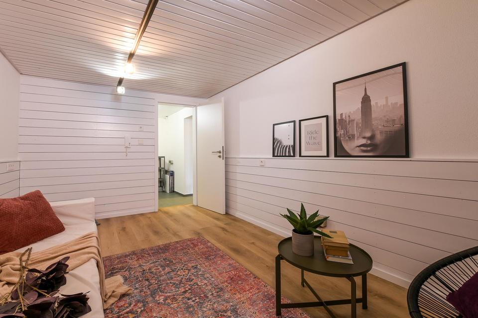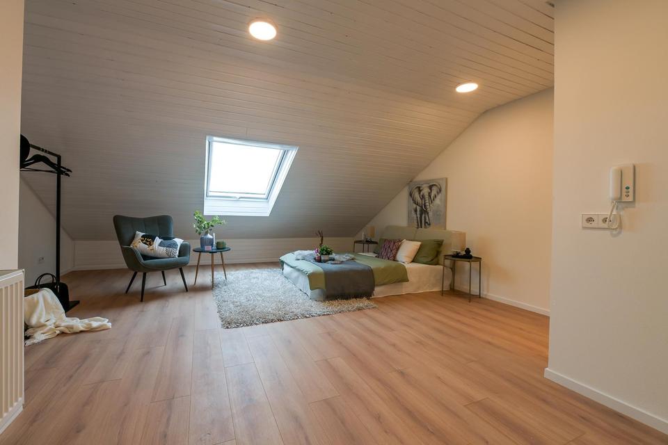 Das Dachgeschoss bietet einen weiteren Wohnraum mit eigenem Badezimmer und WC.