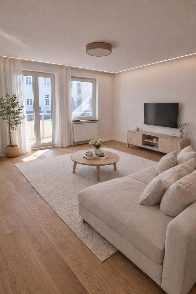 Der großzügige Wohnbereich mit Südbalkon bietet ausreichend Platz zum Entspannen und Einrichten nach Ihren Vorstellungen. Das separate Schlafzimmer eignet sich ideal als ruhiger Rückzugsort. In allen Wohnräumen wurde hochwertiger Parkettboden verlegt, der der Wohnung eine warme und elegante Ausstrahlung verleiht.