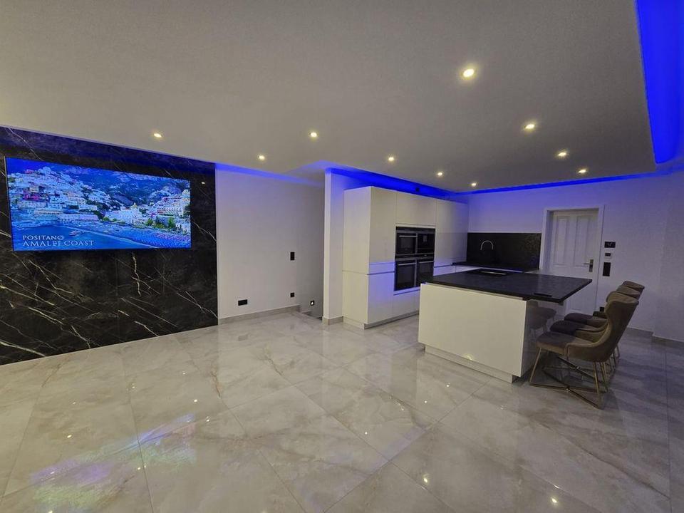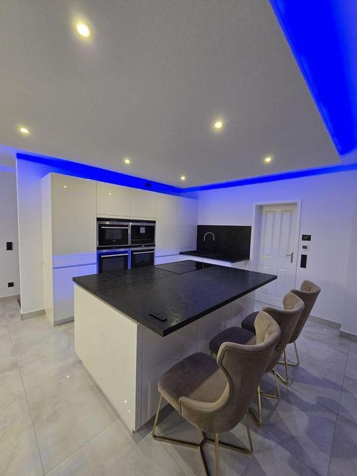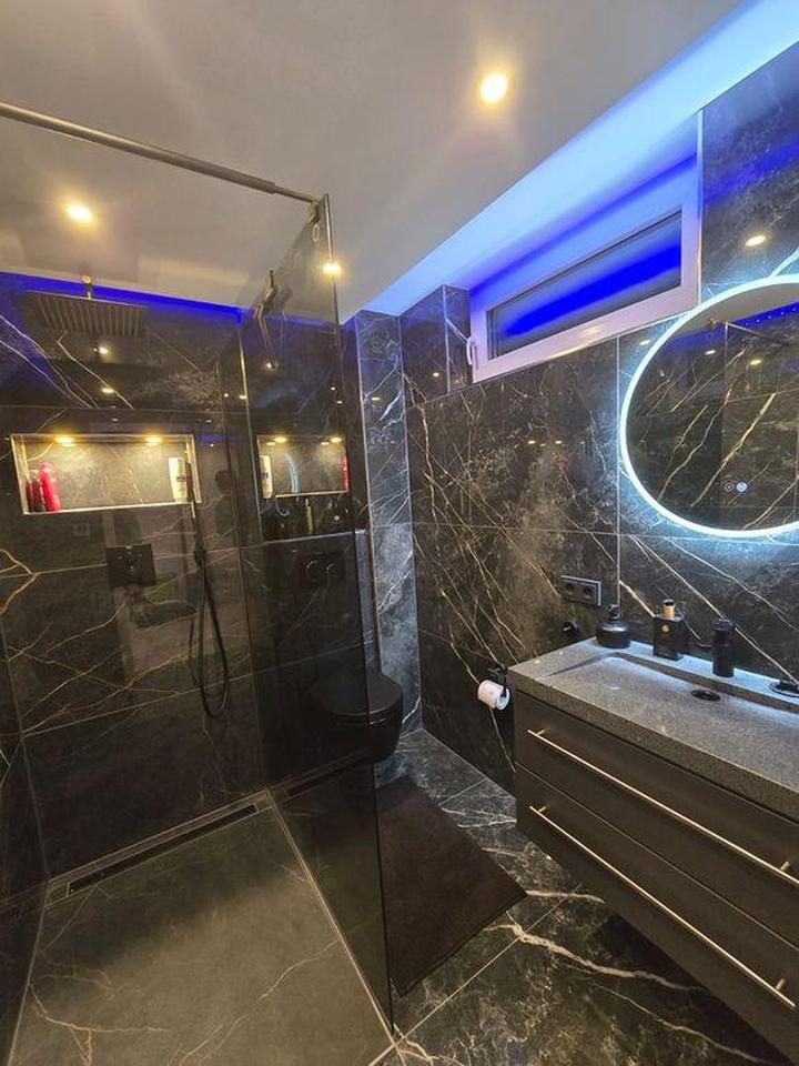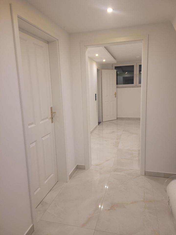 Die mit ca. 105 Qm große Maisonette Eigentumswohnung, verfügt über 4 Zimmern auf 2 Etagen im Erdgeschoß und Souterrain, ein großes lichtdurchflutetes Wohn und Esszimmer mit offener Küche mit einer großen Kochinsel, sowie 2 Bädern mit Bad en Suite. Die Wohnung ist mit einer Luxusküche von der Marke Alno ausgestattet. Die Immobilie verfügt über 2 x Badezimmer (Villeroy und Boch und Geberit), ein Badezimmer ist mit einem Whirlpool ausgestattet, beide Bäder verfügen über eine Fußbodenheizung, außerdem verfügt die Eigentumswohnung über eine Waschmaschine mit Trockner, insgesamt 3 neuen Samsung Fernseher, hochwertige 120×60 Fliesen in allen Wohnräumen. Die Immobilie ist in allen Räumen mit einer Fußbodenheizung ausgestattet, die in jedem Zimmer über ein Control Panel verfügt, welches elektronisch auf die gewünschte Gradzahl eingestellt werden kann. Die Maisonette Wohnung kann mit einer Videosprechanlage und Kameraüberwachung ausgestattet werden. Stilvolle Türen in Landhausoptik, passend zu den Spots in Messing Optik und anthrazitfarbenen Lichtschaltern und Steckdosen runden das Angebot ab.