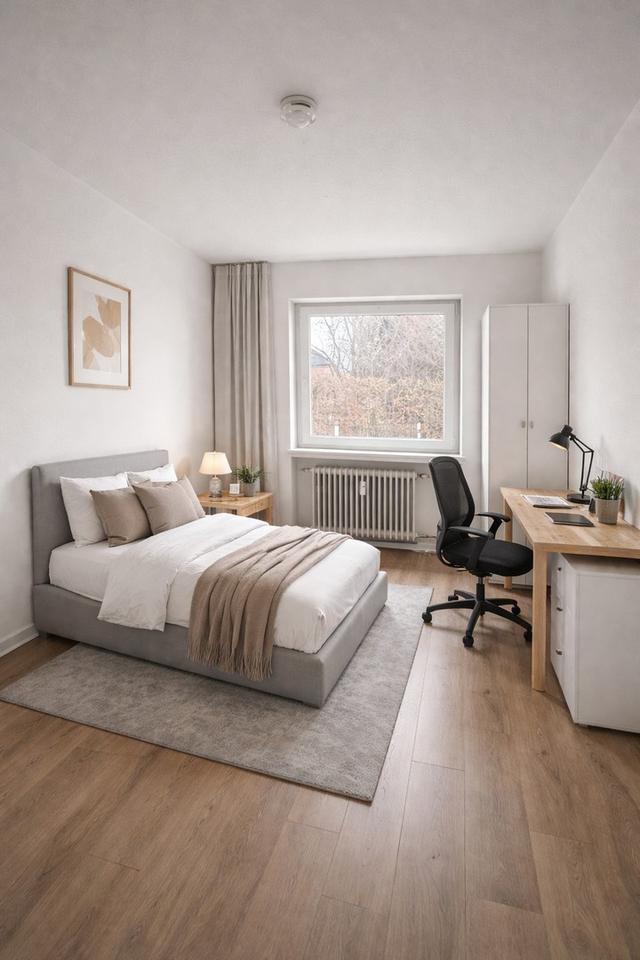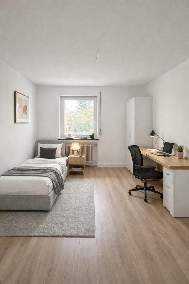 Die WG wird vollständig möbliert übergeben und ist somit sofort bezugsfertig – perfekt für alle, die ohne Aufwand einziehen möchten. Jedes Zimmer ist funktional eingerichtet und bietet alles, was man für den Alltag benötigt: Bett, Schreibtisch, Stauraum und eine angenehme Wohnatmosphäre.