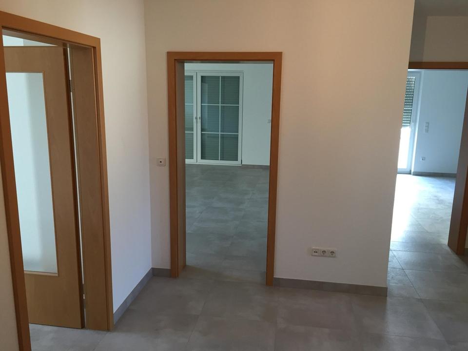 Sehr helle 3-Zimmer-Wohnung im OG eines Mehrfamilienhauses gelegen, großzügige Raumaufteilung, gehobene Ausstattung, Wohnküche mit Fenster, neue voll ausgestattete Einbauküche mit Geschirrspüler, Ceran-Kochfeld, Kühl-Gefrierschrank, großes Wohnzimmer mit Balkonzugang, Kinderzimmer und großzügiges Schlafzimmer mit Balkonzugang, Bad raumhoch gefliest, Doppel-Waschbecken mit Unterschrank und Auszügen, 2 Hochschränke, großer Handtuchtrockner, Wandspiegel mit Beleuchtung, Bad mit Fenster, große Wanne, hochwertige Ausstattung, Fliesenböden in allen Räumen, Fußbodenheizung, kontrollierte dezentrale Lüftungsanlage (Be- und Entlüftung) mit Wärmerückgewinnung, elektrische Rollos, großer Balkon mit Fliesenbelag und Verglasung, Kellerabteil, Wasch- und Trockenraum im Keller.