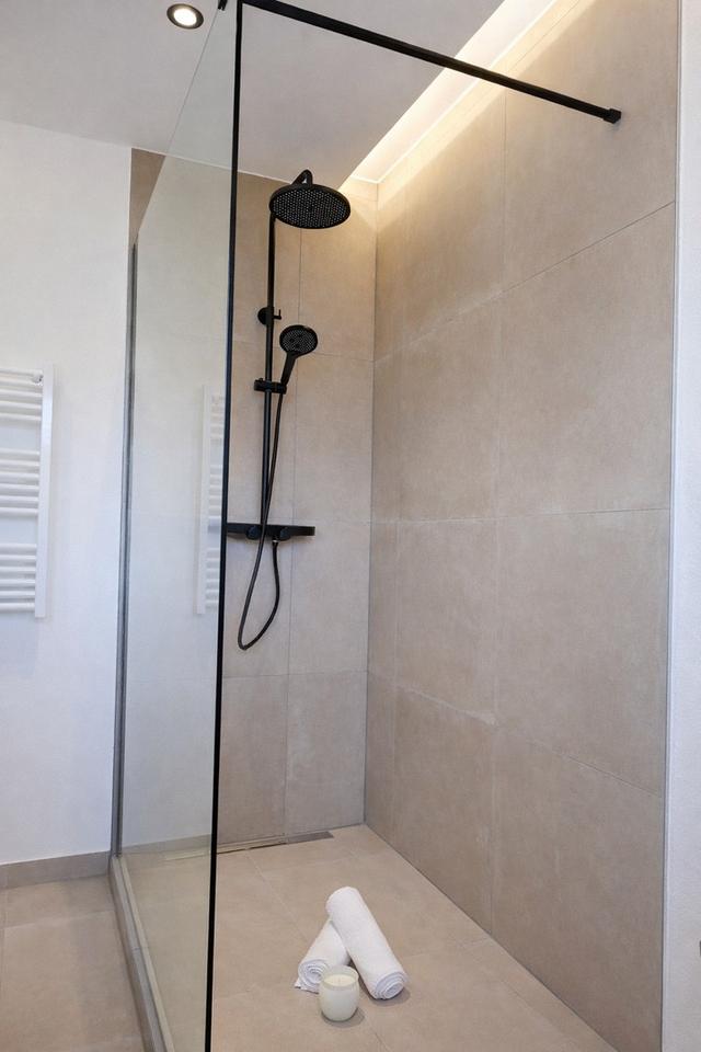 •Modernisiertes Badezimmer mit Dusche, Fußbodenheizung und Handtuchheizkörper