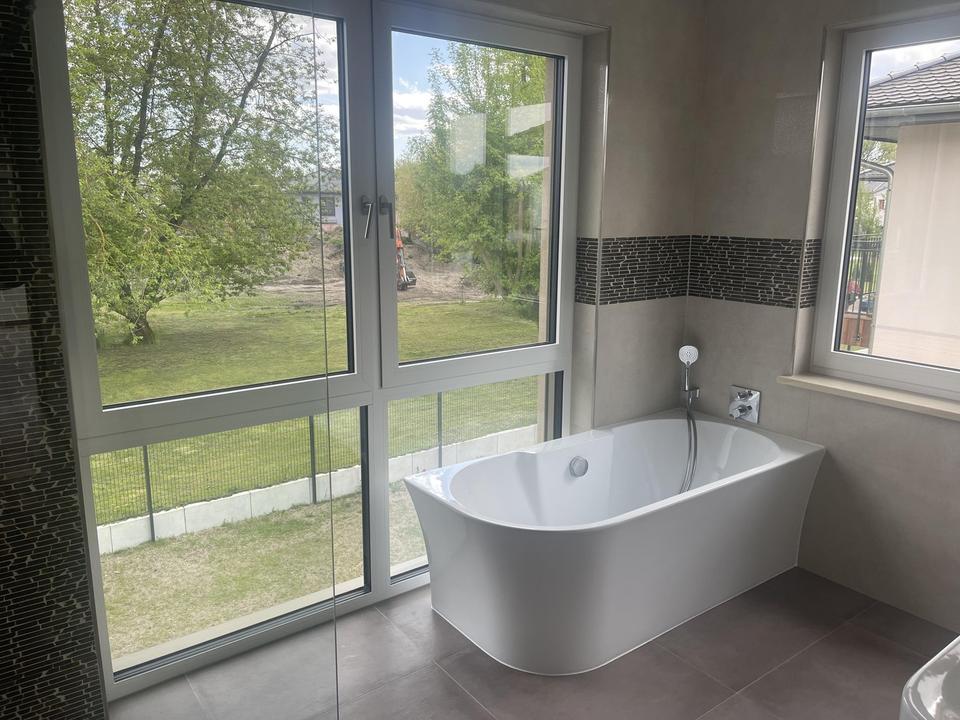 Bad mit großer Walk-In Dusche, Badewanne.