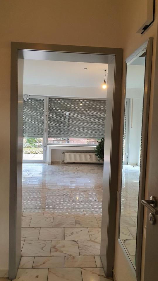 Die gepflegte, lichtdurchflutete und großzügige 4,5 Zimmer Wohnung liegt im Erdgeschoss eines sympathischen 6-Familienhaus mit ruhigen und freundlichen Mitbewohnern. Das Haus verfügt über einen privaten Zugangsweg mit einem großzügigen äußeren Eingangsbereich und einladender Begrünung und entspricht eher dem Charakter eines Privathauses. Die Terrassenwohnung mit Haus im Haus Charakter wird von außen über einen separaten Haustüreingang betreten. Empfangen wird man über eine weitläufige luxuriöse Diele mit hellem Marmorboden, von der alle Zimmer abgehen. Die Wände des ca. 40 qm großen Wohn-und Esszimmers bestechen mit einer außergewöhnlichen venezianischen Glättetechnik. Die Decke ist mit Spottlichtern ausgestattet, die je nach Bedarf in Gruppen angestellt oder gedimmt werden können und Sie so abends ein heimelige Stimmung zaubern können. Vom Wohnzimmer geht es durch die Terassentür auf die große Terrasse mit Blick auf den Garten. Die an das Wohn- und Esszimmer angrenzende Küche ist sowohl über das Wohnzimmer als auch über den Flur erreichbar. So können Sie auf kurzem Wege ein entspanntes Frühstück auf der sonnigen Süd-Terrasse genießen. Eine weitere Süd-Terrasse liegt vor dem ca. 24 qm großen Arbeitszimmer. Schlaf-, Arbeitszimmer und Bad liegen an einer kleineren Diele im hinteren Bereich der Wohnung und sind von der übrigen Wohnung abgeschirmt, so dass bei Besuch im vorderen Bereich der Wohnung, der hintere Bereich privat bleibt. Das Badezimmer liegt zwischen dem Arbeitszimmer und Schlafzimmer und wird von der Diele aus betreten.