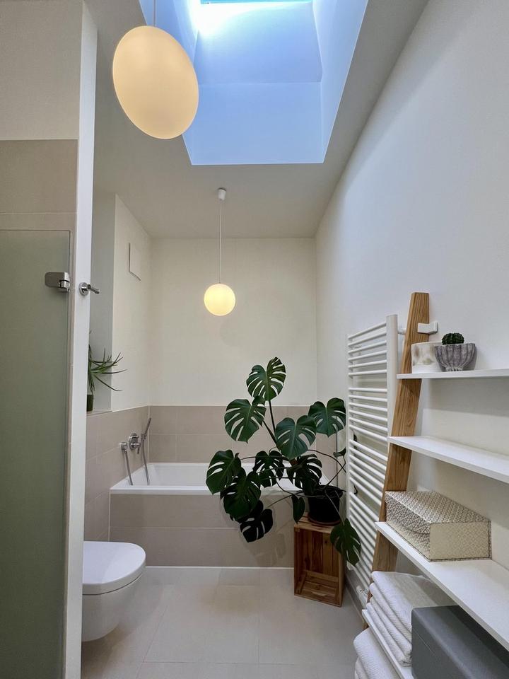 * Elegantes Tageslichtbad mit bodentiefer Dusche & Handtuchheizkörper