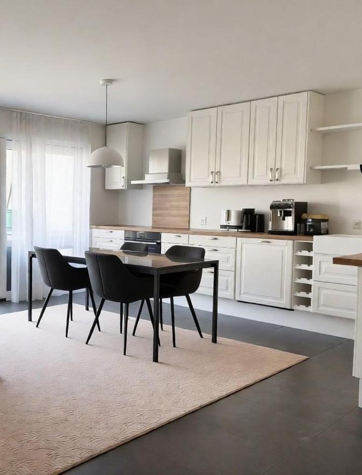 Die Wohnung überzeugt durch ihre gehobene Ausstattung und ein durchdachtes Raumkonzept mit angenehmem, offenem Wohngefühl. Das großzügige Tageslichtbad ist mit Badewanne und bodengleicher Dusche ausgestattet. Eine separate Gästetoilette sorgt für zusätzlichen Komfort. Die vorhandene Einbauküche fügt sich harmonisch in das Gesamtbild ein.