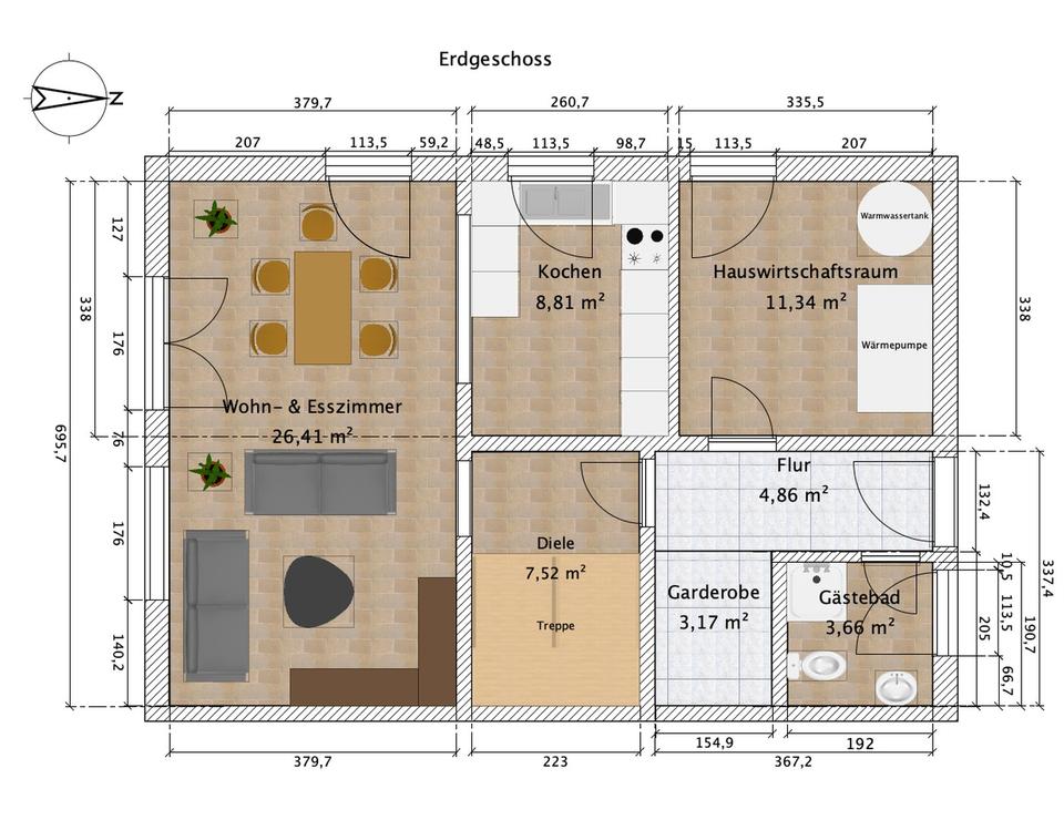 – Erdgeschoss: Fliesenboden.
