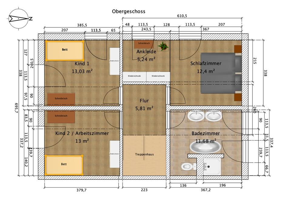 – 1 Elternschlafzimmer mit Ankleide oder Homeoffice-Bereich.