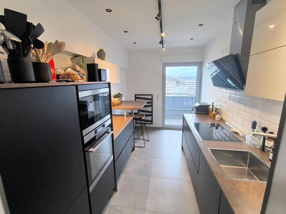 1 Küche mit integrierter hochwertiger Einbauküche – mit direktem Zugang zum Balkon