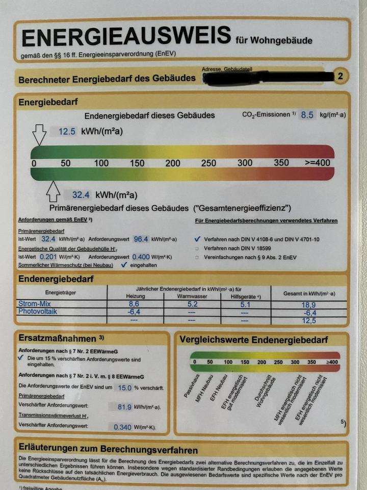 – Endenergiebedarf: 12,5 kWh/(m²·a)