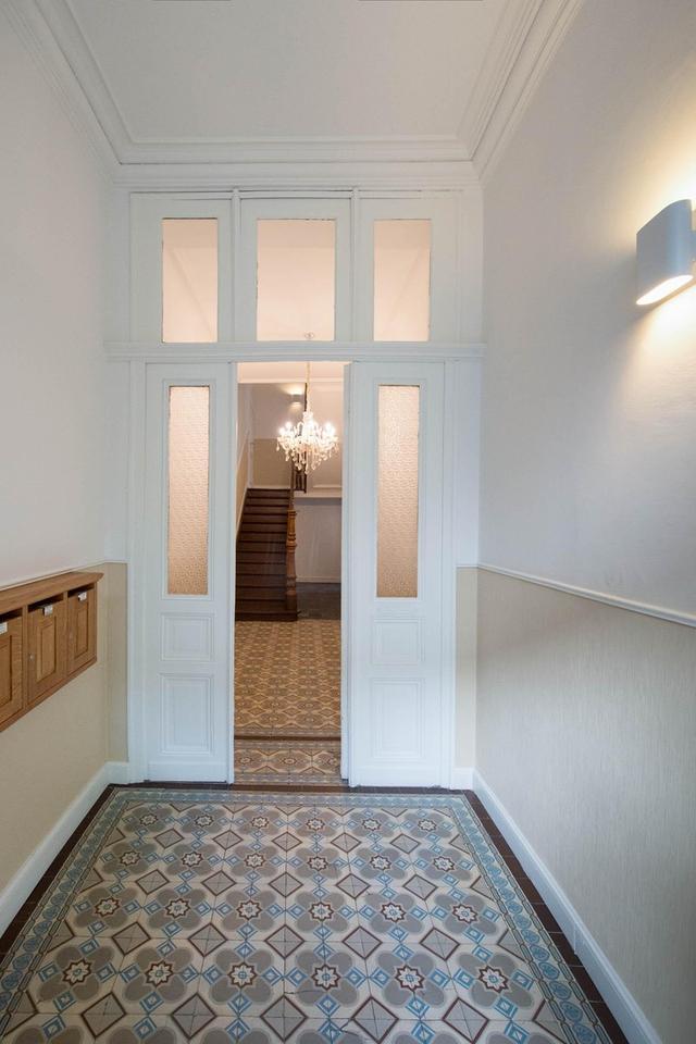 Dieses stilvolle, vollständig möblierte Studio-Apartment befindet sich im Erdgeschoss eines denkmalgeschützten Stadthauses und wurde mit viel Liebe zum Detail modernisiert. Hohe Decken, klassischer Stuck und massive Holzdielen sorgen für eine besondere Wohnqualität – ergänzt durch einen seltenen Außenbereich mitten in der Stadt.