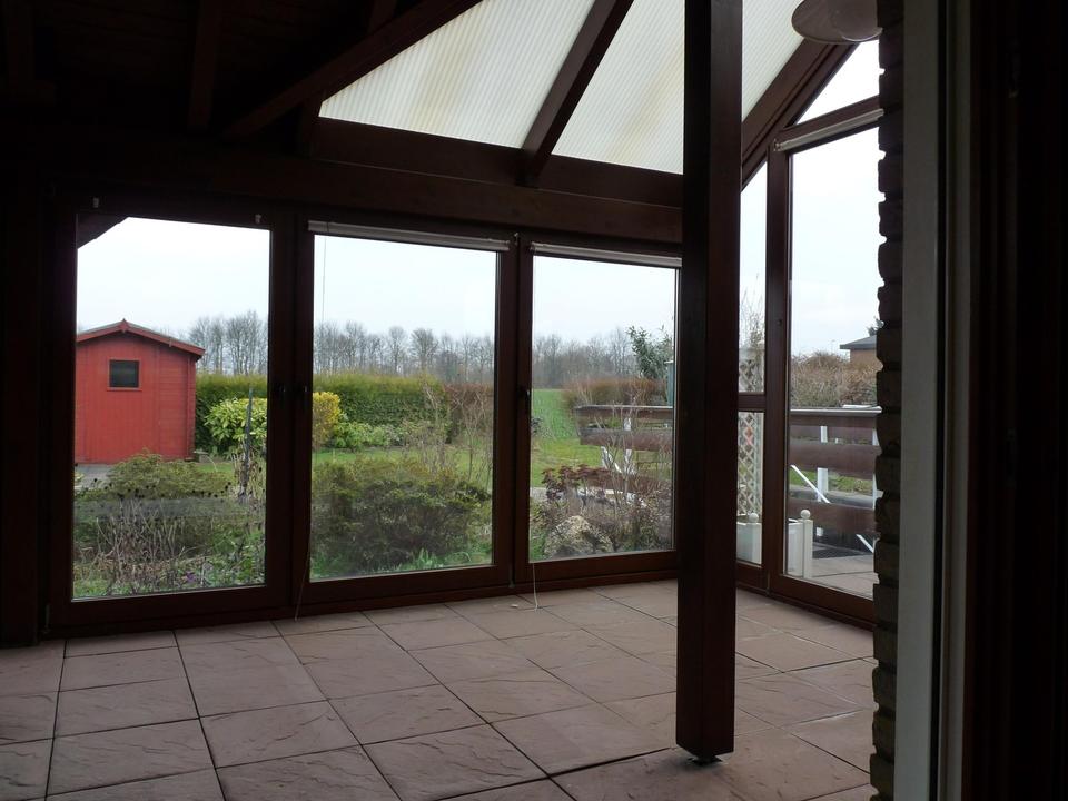 Wintergarten mit direktem Zugang zu eigenem Garten und großzügiger Terrasse mit ca. 21 m². Im Wintergarten/Wohnraum kann ein Kaminofen eingebaut werden. Zwei Kaminzüge sind vorhanden.