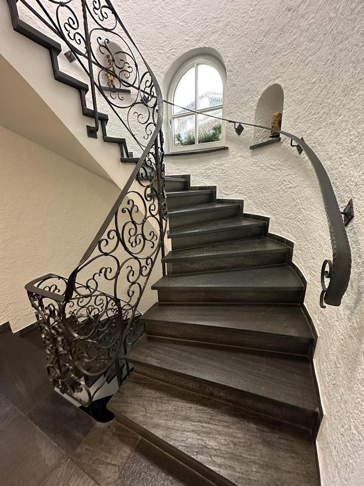 Vom großzügigen Eingangsbereich aus gelangen Sie in alle Räume im Erdgeschoß und zu den Treppen in den 1. Stock und Keller. Im Erdgeschoß befinden sich das 43 m² große Wohnzimmer mit Panoramafenstern, Kachelofen und Ausgang zur Süd- bzw. Ostterrasse mit Freisitz und offenem Kamin. An das Wohnzimmer schließt sich ein offenes Esszimmer und die Durchgangstüre zur abgeschlossenen Küche an. Außerdem stehen im Erdgeschoß noch ein Gäste-WC und ein Hauswirtschaftsraum zur Verfügung. Über den Treppenaufgang mit Stufen aus schwarzem Granit und schmiedeeisernem Geländer gelangen Sie in das OG. Dort befindet sich das große Schlafzimmer mit Zugang zum Balkon. Neben dem Schlafzimmer liegt das Bad mit großem Fenster, begehbare Regendusche, Wanne, Waschtisch mit Doppelwaschbecken und Schminkplatz. Zusätzlich befindet sich auf dieser Seite des OG noch ein kleines Ankleidezimmer. Gegenüber befindet sich die Einliegerwohnung mit separatem Eingang. Die Einliegerwohnung besitzt einen kleinen Flur, ein geräumiges Wohnzimmer, ein Schlafzimmer, Badezimmer mit großer begehbarer Dusche und eine kleine Küche. Zur Einliegerwohnung gehört noch ein großzügiger Südbalkon mit Panoramablick. Im Kellergeschoß befinden sich ein 30 m² großer Mehrzweckraum, ein Abstellraum, der große Heizungsraum, die Waschküche, ein extra Trockenraum und der Wellnessbereich mit großer Infrarotkabine, begehbarer Dusche und WC. Der gesamte Kellerbereich ist gefliest und isoliert.