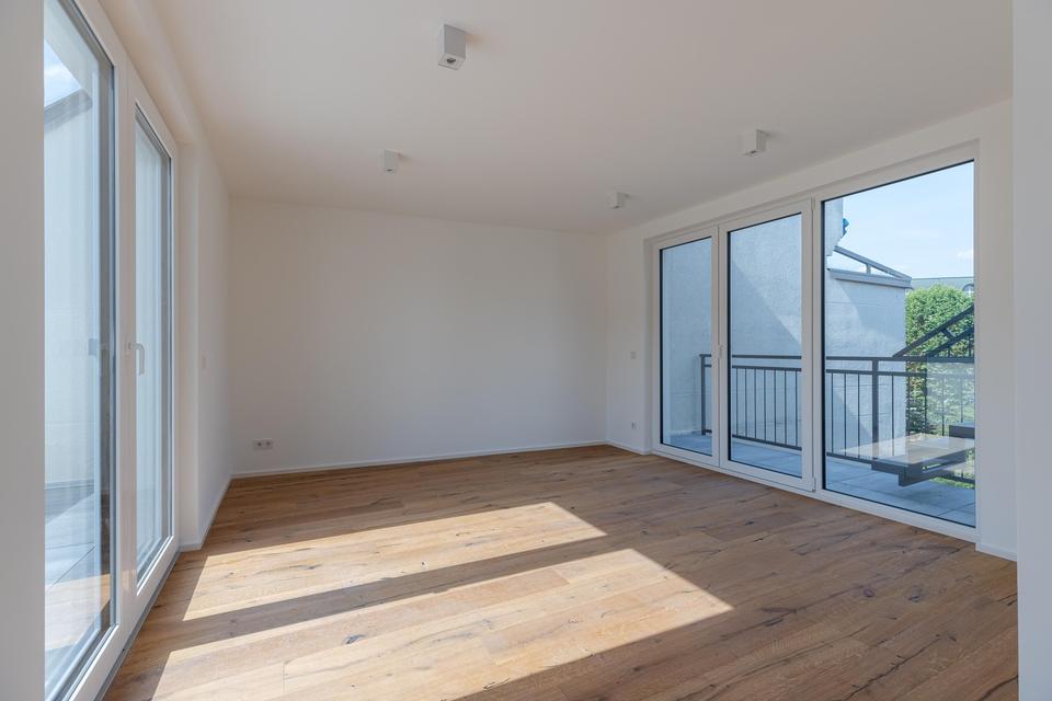 Der großzügige Wohn- und Essbereich mit direktem Zugang zur Dachterrasse bildet das Herzstück der Wohnung. Eine moderne, offen gestaltete Küche lässt keine Wünsche offen und fügt sich harmonisch in das Wohnkonzept ein. Die Schlafzimmer überzeugen durch ihre Ruhe und bieten viel Platz für individuelle Gestaltungsmöglichkeiten. Ein luxuriöses Masterbad sowie ein zusätzliches Gäste-Dusch-Bad runden das Raumangebot ab.