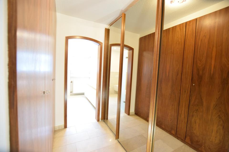 Der Durchgang vom Schlafzimmer führt direkt in das angrenzende Badezimmer, was den Bereich als komfortablen, privaten Rückzugsort qualifiziert.