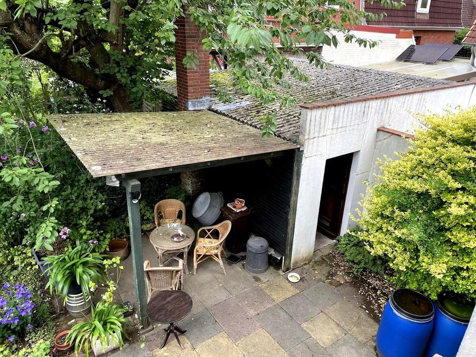Im Anbau gibt es eine Garage mit haustechnischem Nebenraum, die sowohl über die Terrasse als auch über eine rechts vom Haus liegende Auffahrt erreicht werden können. Hier bieten sich Lager- und Abstellflächen oder auch Platz für eine Werkstatt. Kellerräume gibt es keine.