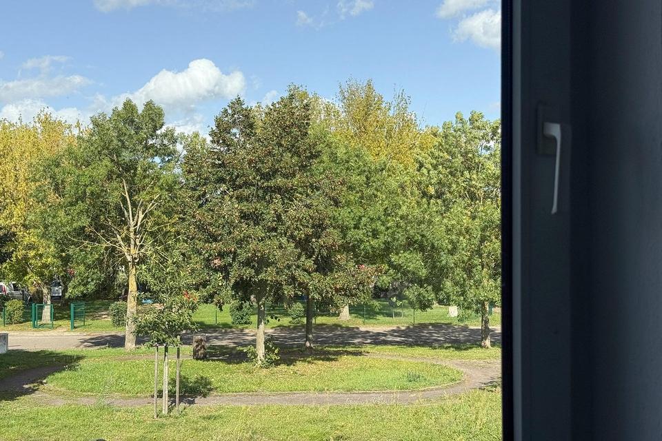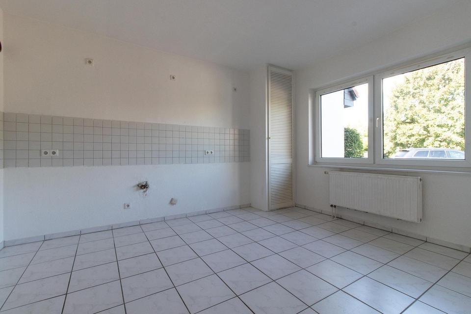 Vor dem Haus gibt es einen PKW-Stellplatz und einen kleinen Vorgarten. Ein zweiter Stellplatz wäre hier denkbar. Direkt gegenüber, auf der anderen Straßenseite, befindet sich eine Reihe öffentlicher Stellplätze für Besucher. Aus der Küche blickt man auf eine kleine öffentliche Grünanlage und in Sichtweite befindet sich ein Spielplatz.