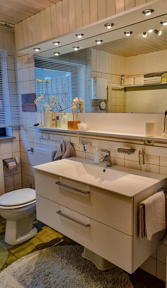 Das Haus verfügt über eine gut gepflegte Ausstattung mit zwei Badezimmern, Einbauküche und einem Gäste-WC. 2011 wurden fast alle Fenster und sämtliche Dachfenster mit Wärmeschutz-Isolierglas erneuert. Das EG-Bad wurde letztmals 2014 modernisiert.