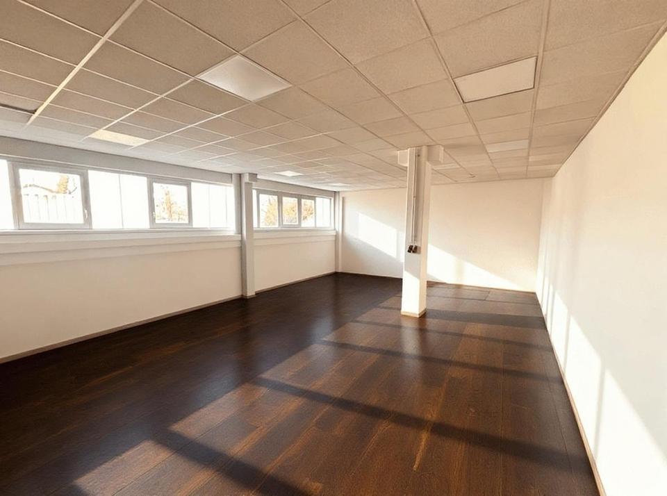 Die Fläche verteilt sich auf Erdgeschoss und Obergeschoss und kann individuell auf unterschiedliche Anforderungen angepasst werden. Je nach Nutzung sind Einheiten bereits ab wenigen hundert Quadratmeter realisierbar.