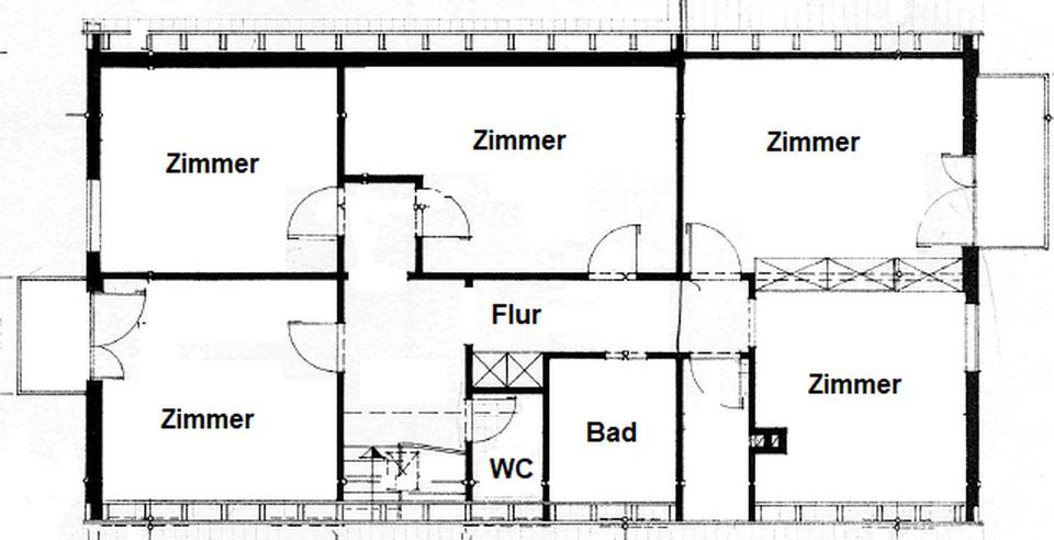 Im Obergeschoss stehen neben einem separaten WC und einem Bad fünf großzügige Zimmer zur Verfügung – ideal als Kinder-, Gäste- oder Arbeitszimmer. Die vorhandene Struktur bietet vielfältige Nutzungsmöglichkeiten, auch für Homeoffice oder individuelle Rückzugsorte.