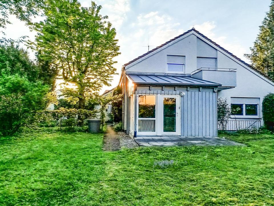 Aus der Hauptwohneinheit hat man im Erdgeschoss durch die durchgehenden Fensterflächen einen traumhaften Blick in den umschließenden Naturgarten mit duftenden Blumen, bunten Sträuchern und grünen Hecken. Der gewachsene, kaum einsehbare Naturgarten bietet viel Raum zur Entfaltung – für spielende Kinder, entspannte Sommerabende oder gärtnerische Leidenschaft. Die große, überdachte Südterrasse mit Seerosenteich schafft eine besondere Atmosphäre – selbst an regnerischen Tagen.