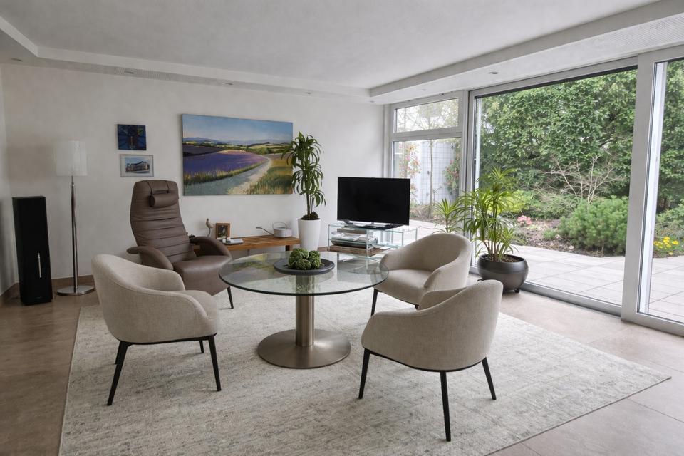 Die Immobilie präsentiert sich mit einem Ausstattungsniveau, das als hochwertig bis luxuriös einzuordnen ist, geprägt von wertigen Materialien, großzügiger Raumstruktur und einem repräsentativen Wohnambiente. Aufgrund der Flexibilität des Raumangebots können sich Familien wie Selbstständige mit eigener Praxis gleichermaßen wohl fühlen.