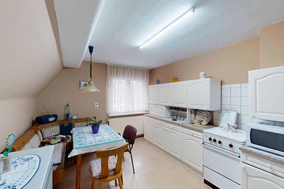 Das Wohnhaus wurde 1961 in massiver Bauweise errichtet und kontinuierlich instand gehalten. Das Dach des Wohnhauses sowie des Nebengebäudes wurde 1996 erneuert, die Innenräume 2016 umfassend modernisiert und die Fassade 2019 saniert. Die Kunststofffenster stammen aus dem Jahr 2015. Beheizt wird das Haus über eine Gas-Zentralheizung aus ca. 2020. Die oberste Geschossdecke ist gedämmt, der Dachboden ist nicht ausgebaut. Der unbeheizte Keller verfügt über ca. 90 m² Nutzfläche und eine massive Stahlbetondecke. Die Wohnräume verteilen sich auf zwei Etagen und werden durch zwei Bäder sowie ein separates Gäste-WC ergänzt. Balkon, Terrasse und Wintergarten mit insgesamt rund 45 m² erweitern den Wohnraum nach außen.
