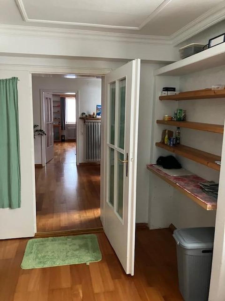 Die Wohnung ist vom Mieter aktuell möbiliert . Hochwertige Parkettfußböden in allen Räumen. Terrasse mit wetterfester sibirischer Lärche, und mit ausziehbarer Sonnenmarkise, ausgestattet. Wohnzimmer mit antiken Kachelofen. Alle Räume mit Stuckdeckenleisten. Schlafzimmer mit vom Schreiner angefertigter Regalwand. Ältere
