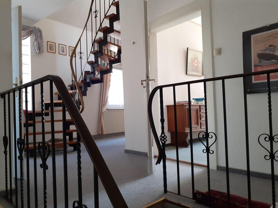 Das großzügige Stadthaus besticht durch seinen guten Pflegezustand. Im vorderen Bereich ist der ehemalige Friseursalon als Büro und großen Hauswirtschaftsraum mit separater Vorratskammer umgenutzt. Rückwärtig wurde eine große Küche eingerichtet. Ein Wohnzimmer ist im Anbau mit Zugang zur überdachten Terrasse zu finden . Weiter sind im Anbau ein Gäste-WC und eine Abstellkammer vorhanden. Im Obergeschoß befindet sich ein großes Wohnzimmer, Badezimmer und ein Schlafzimmer mit Zugang zur großen Dachterrasse. Im Dachgeschoß sind zwei Kinderzimmer mit eigenen Badezimmer eingerichtet. Im rückwärtigen Bereich liegt der gepflegte Garten mit befestigten Zugang zum Gartenhaus und zur rückwärtigen Auto- und der Fahrradgarage, die Sie über das Nachbargrundstück erreichen können. Ein überschaubares Anwesen in zentrumsnaher Wohnlage.