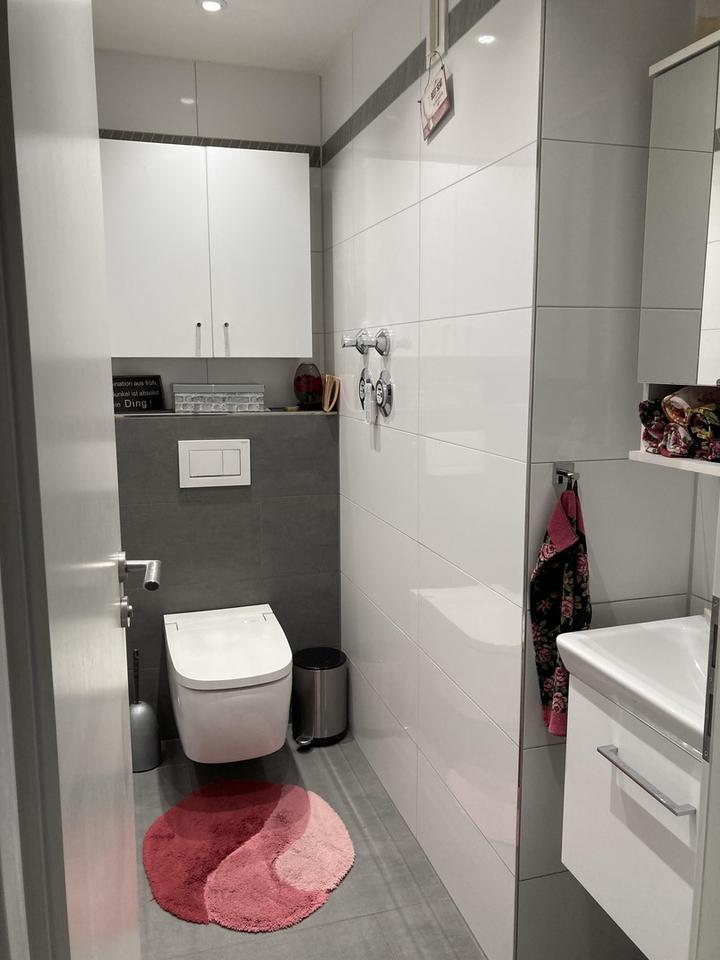Beide Sanitärbereiche (Dusche mit Toilette und Einzel-WC) der Wohnung sind renoviert. Das Einzel-WC verfügt über eine integrierte Bidet-Funktion. An beiden Balkonteilen sind Markisen als Sonnenschutz vorhanden.