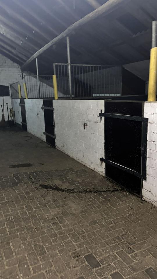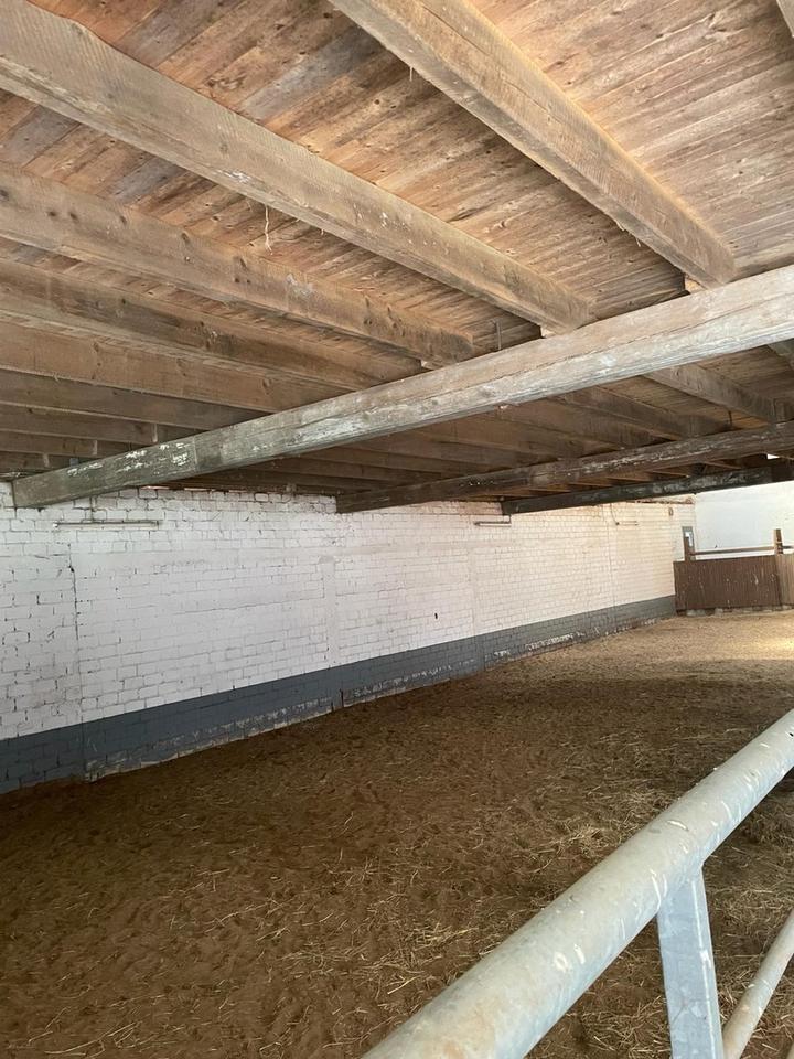 Hinter dem Gebäude befindet sich ein Paddock, der über ein großes Tor auf der Rückseite der Halle und über eine eigene Zuwegung erreichbar ist.