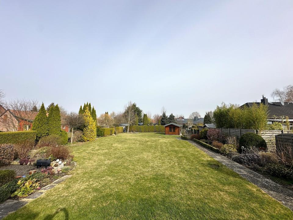 Das großzügige Grundstück bietet zusätzliches Entwicklungspotenzial. Eine mögliche weitere Bebauung im hinteren Grundstücksbereich (z. B. nach Abriss der bestehenden Garage) erscheint grundsätzlich denkbar.