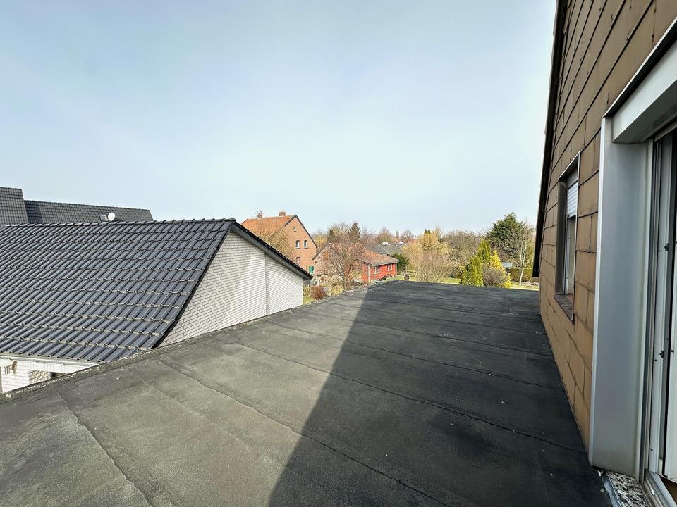 Ein unausgebautes Dachgeschoss ist vorhanden und bietet bei Bedarf zusätzliche Nutzungsmöglichkeiten. Besonders hervorzuheben ist die aktuell nicht ausgebaute Dachterrasse im Obergeschoss, die sich individuell gestalten lässt.