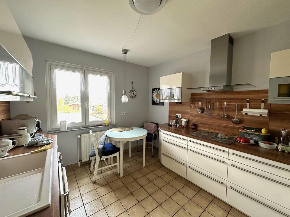 Außen überzeugt das Haus durch ein großzügiges und sehr gepflegtes Grundstück. Neben einer Terrasse zur Straßenseite sowie einer weiteren Terrasse zum Garten bietet die Immobilie vielfältige Aufenthaltsmöglichkeiten im Freien. Der Garten ist weitläufig und liebevoll angelegt. Eine Garage mit zusätzlichen Abstellmöglichkeiten sowie ein direkter Zugang zum Garten runden das Angebot ab.