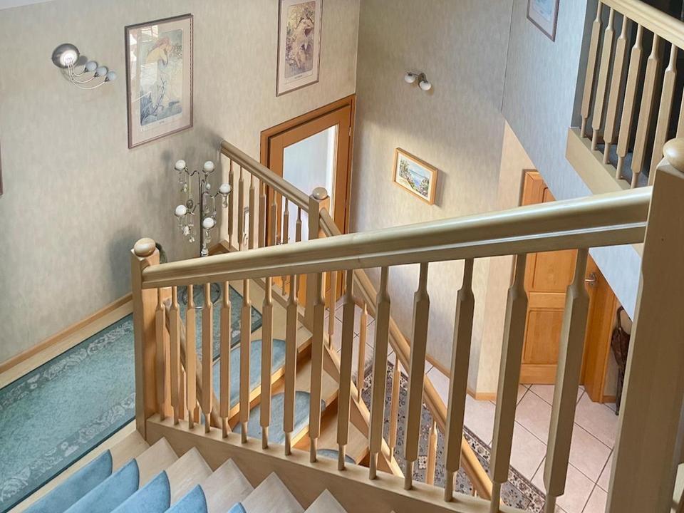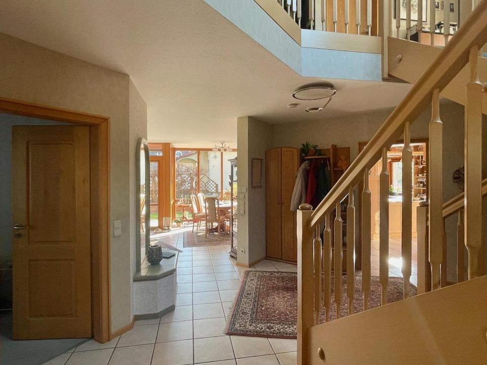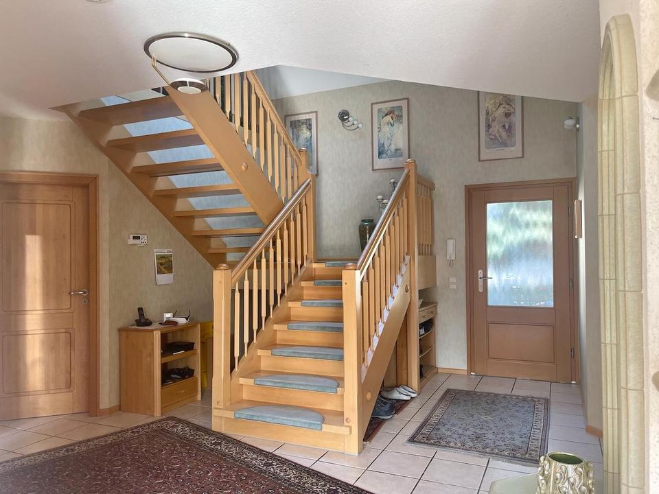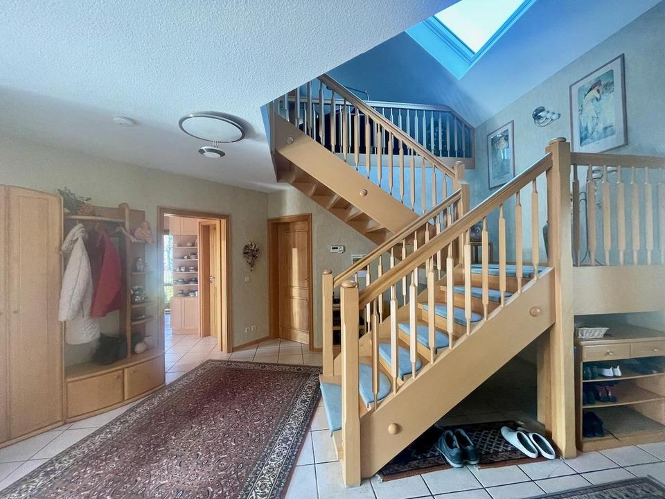 Das Erdgeschoss ist durch den offenen Grundriss insgesamt sehr großzügig und hell. Die geräumige Diele beherbergt eine bequeme und altersgerechte Treppe mit überdurchschnittlicher Breite und ohne Stufenverzug.