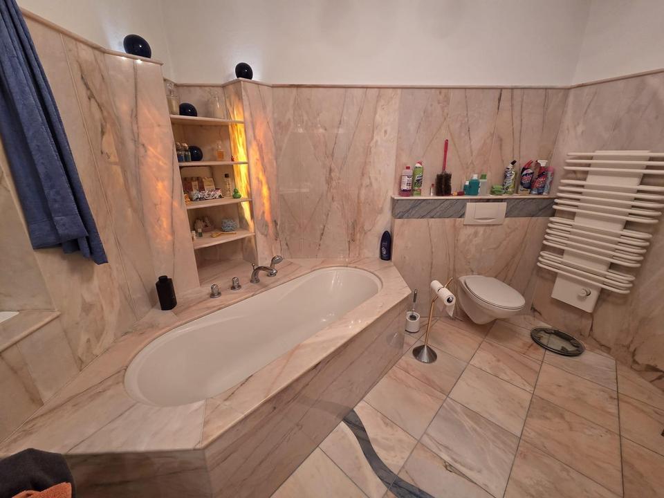 Ein besonderes Highlight bildet das großzügige Büro im Südwesten, das durch den Zugang zu einem sonnigen Westbalkon zusätzlichen Wohnkomfort bietet. Die vorhandenen Küchenanschlüsse ermöglichen eine flexible Nutzung – sei es als eigenständiger Wohnbereich, Atelier oder zusätzliche Wohneinheit.