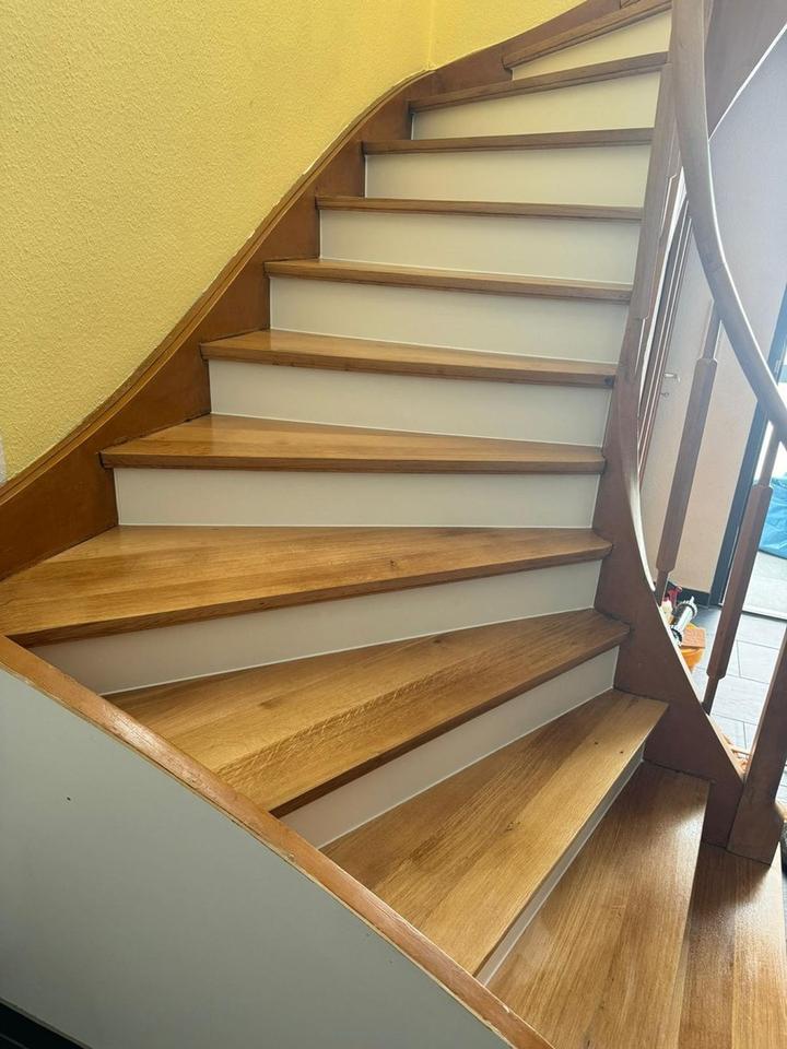•Alle Bodenbeläge wurden entfernt und im EG durch Fliesen sowie im OG durch Parkett ersetzt