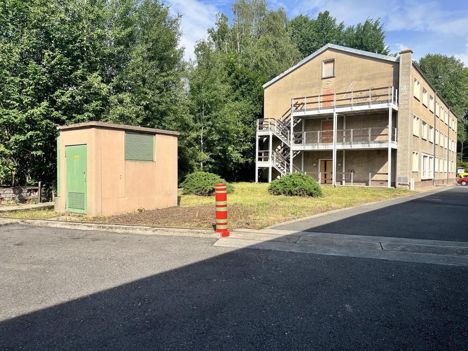 Im EG befindet sich neben dem einseitigen Sanitärraum auch der Heizungsraum. Gefolgt von einer Räumlichkeit mit ca. 80 m² und 3,0 m Innenhöhe, welche ehemals als Mensa genutzt wurde. Von hier aus gelangt man über den in der der Gebäudemitte angeordneten Flur, in zahlreiche links-, sowie rechts angeordnete Räumlichkeiten welche ehemals als Schulungs- und Büroräume genutzt wurden.