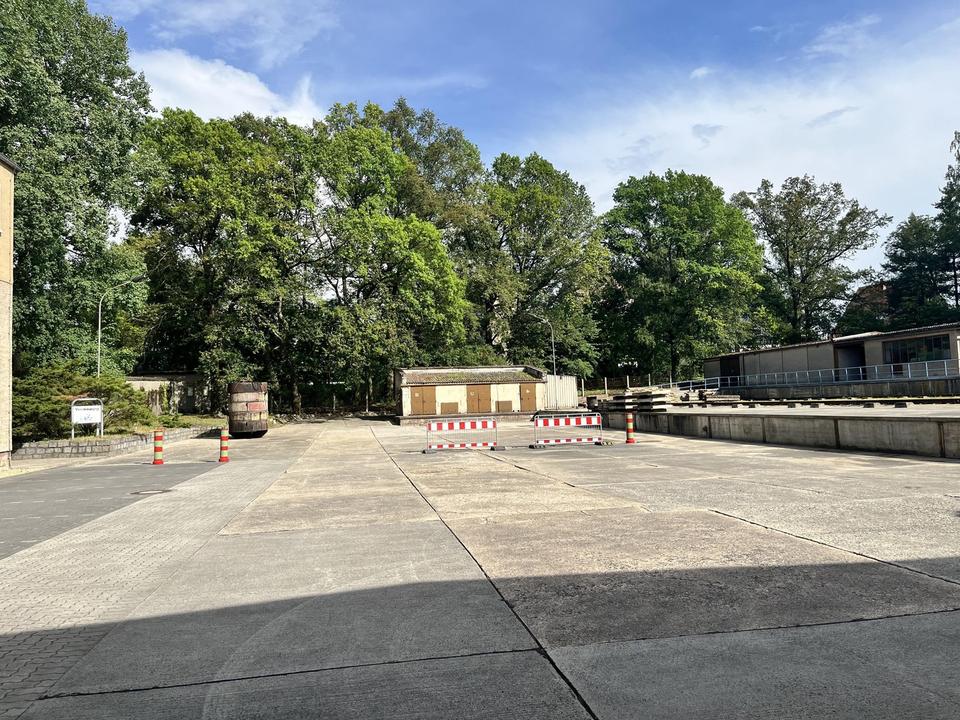 Am Ende, im hinteren Bereich des Grundstücks befindet sich, ein um etwa 1989 auf massiv eingelassen Betonfundamente, nie benutzter Fahrzeugwaschplatz.