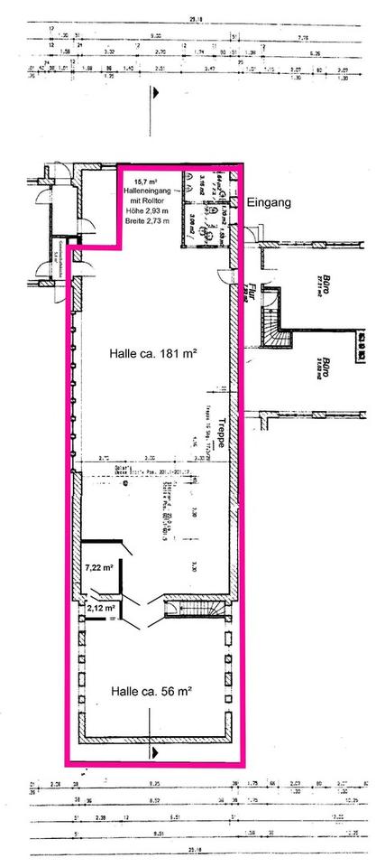 Insgesamt gibt es ca. 395 m² zu vermieten. Zusätzlich kann ein angrenzender Bürotrakt mit ca. 100 m² gemietet werden.