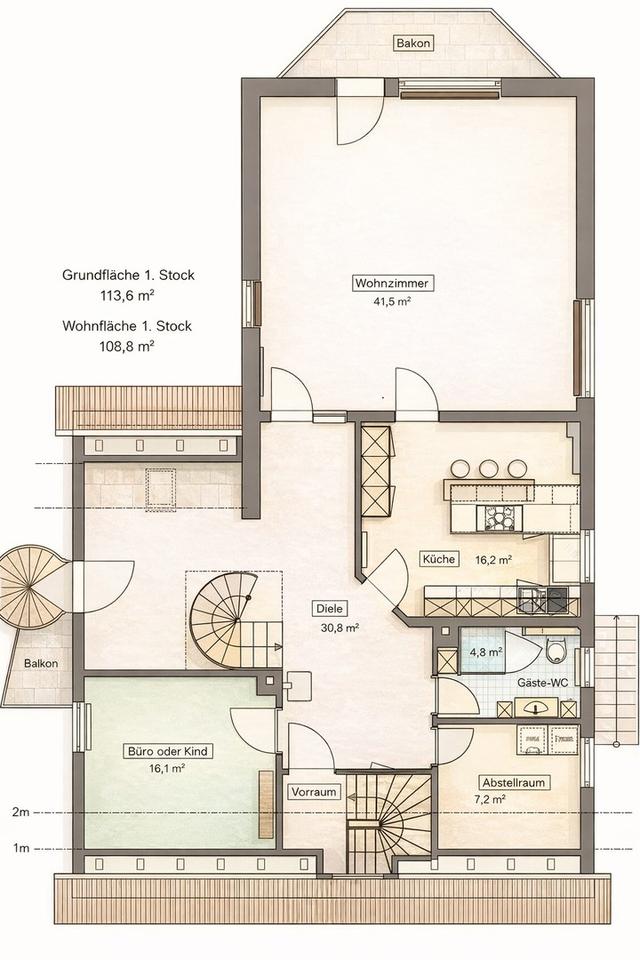 Abgerundet wird das Angebot durch zusätzlichen Stauraum im Kellergeschoss.
