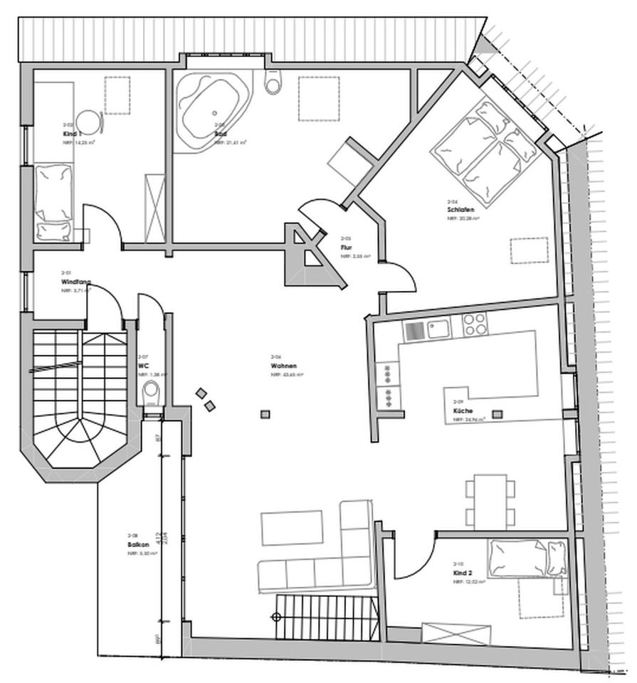 Insgesamt stehen den zukünftigen Mietern hier nahezu 200 m² tatsächliche Gesamtfläche (incl. Balkon und Dachboden) zur Verfügung.