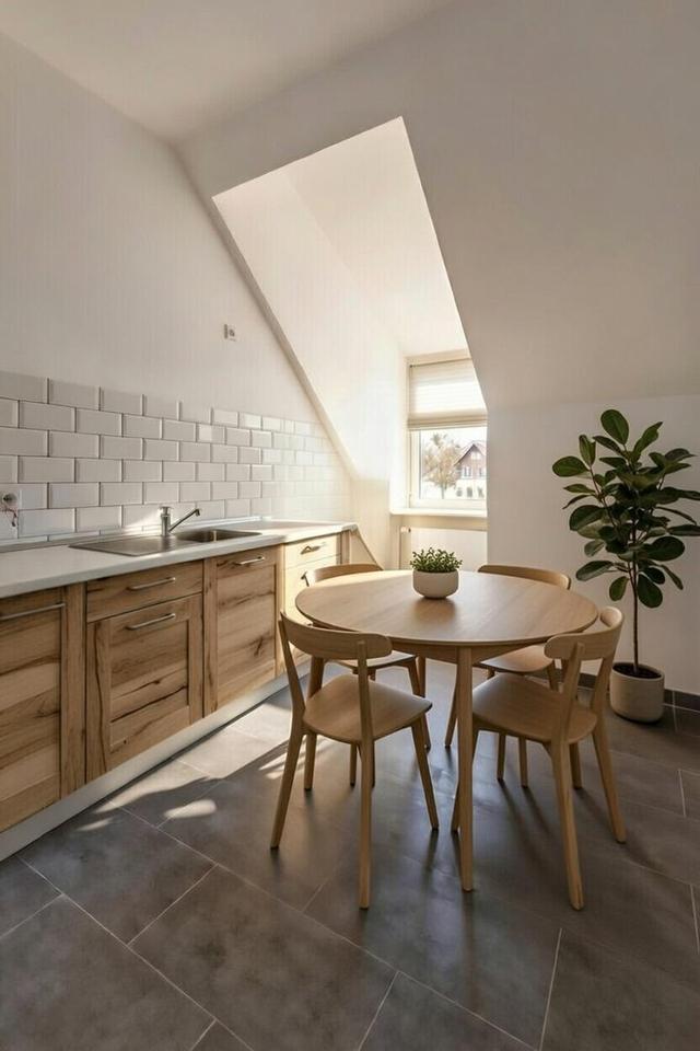 Das modern ausgestattete Badezimmer ist mit einer großzügigen Dusche sowie einem großen, zu öffnenden Dachfenster ausgestattet und bietet dadurch viel Tageslicht und eine sehr gute Belüftung.
