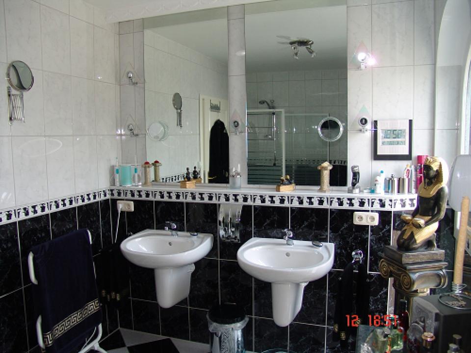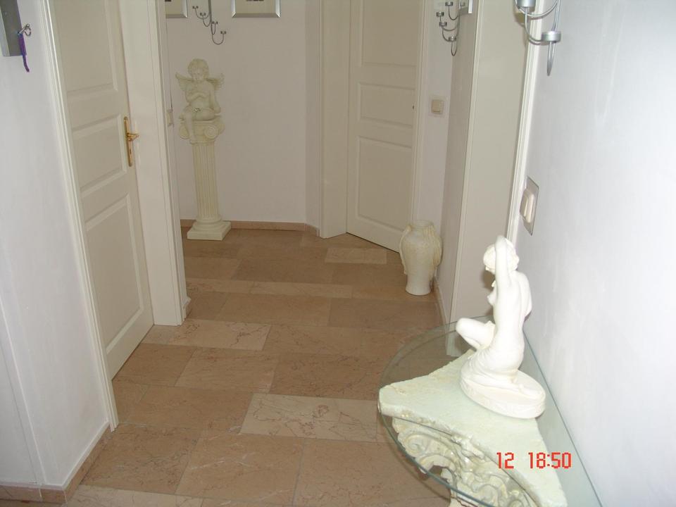 Böden- Paneele in Holzstruktur, Fliesen, Marmor im Flurbereich, weiße Landhaustüren mit edlen Messingbeschlägen geben der Wohnung ein stilvolles- wohnliches Ambiente.